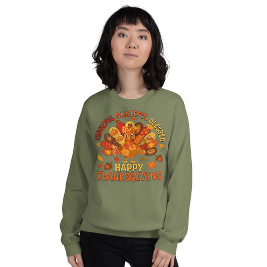Thankful, Grateful and Blessed Happy Thanksgiving Unisex Sweatshirt