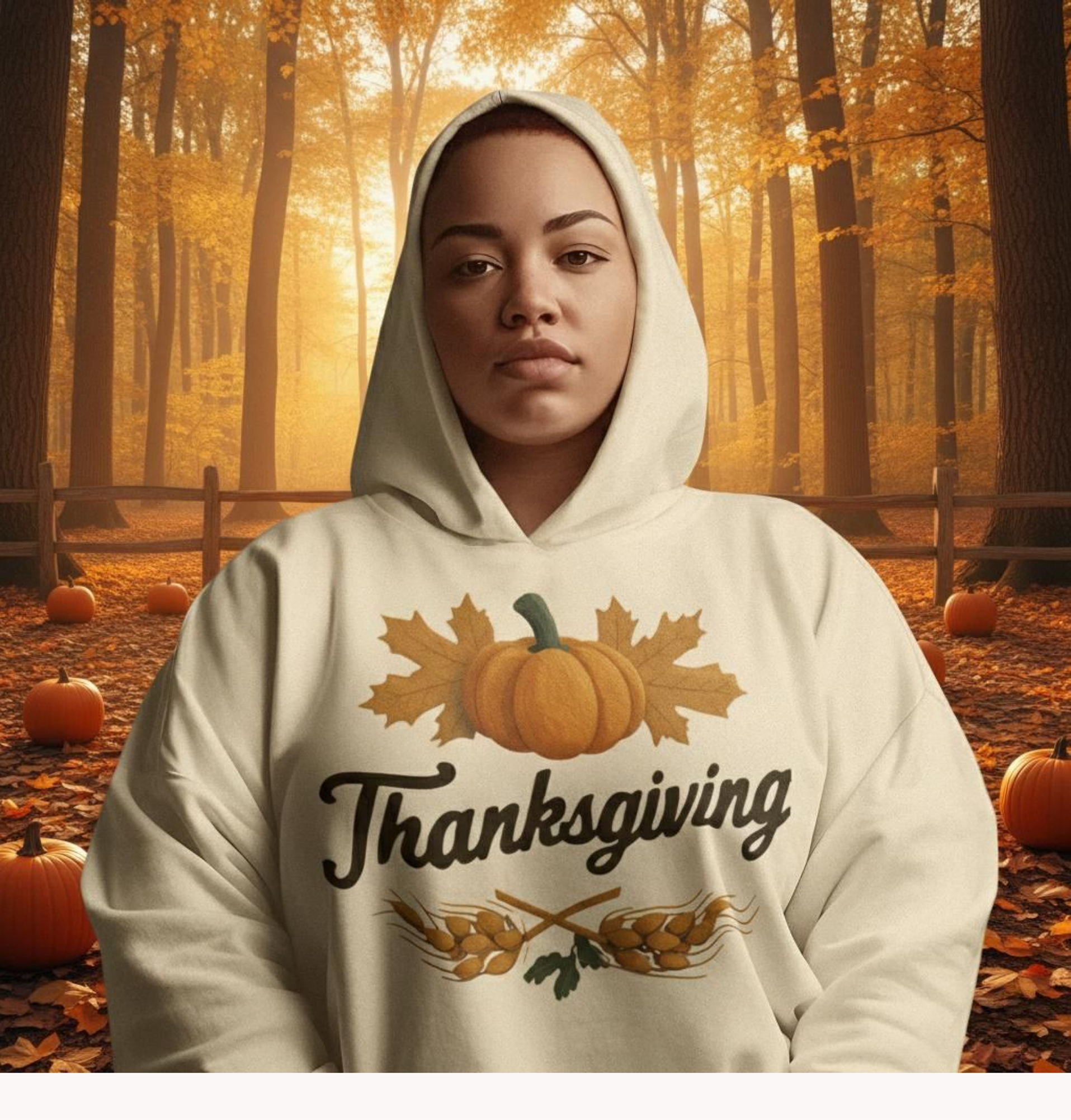 With its warm hood and roomy front pocket, it’s as practical as it is stylish. Whether you’re hosting dinner, attending a Friendsgiving gathering, or simply enjoying pumpkin spice season, this hoodie keeps you comfortable while showing off your holiday spirit.